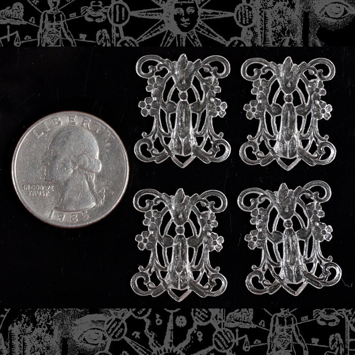 Antiqued Silver Plated Brass Decorative Filigree 4X Connectors - Set of Four - S-4C07