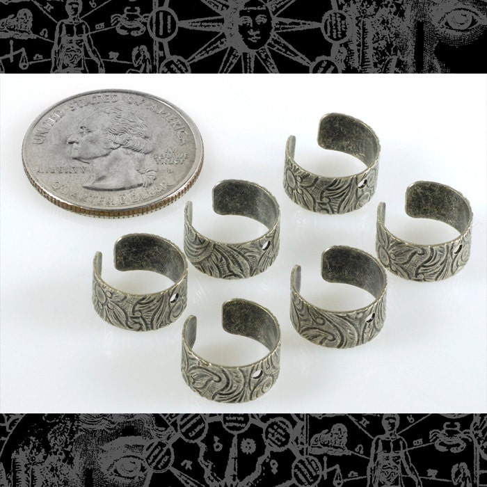 Antiqued Silver Plated Brass Ear Cuffs Floral Etched with Hole - Earring Cuff - Set of Six - S-OD7