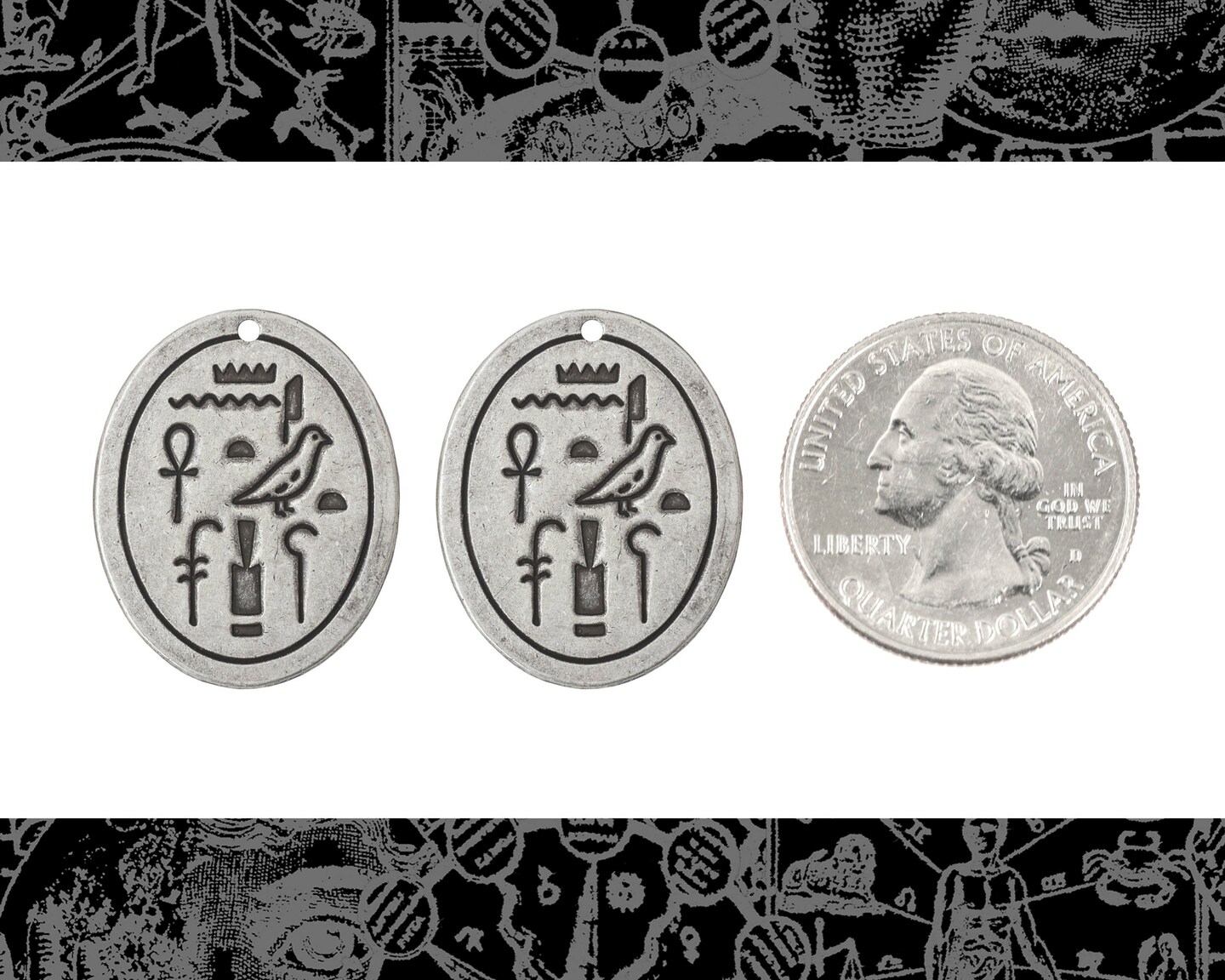 Antiqued Silver Plated Brass Egyptian Hieroglyph Pendants - Set of Two - S-P122