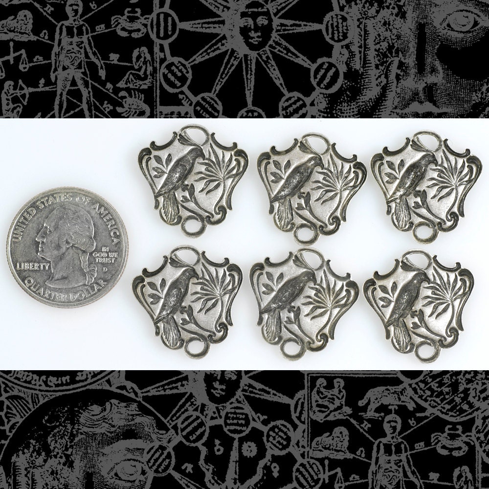 Antiqued Silver Plated Brass Embossed Bird Shield Connectors - Set of Six - XXX - S-2C33