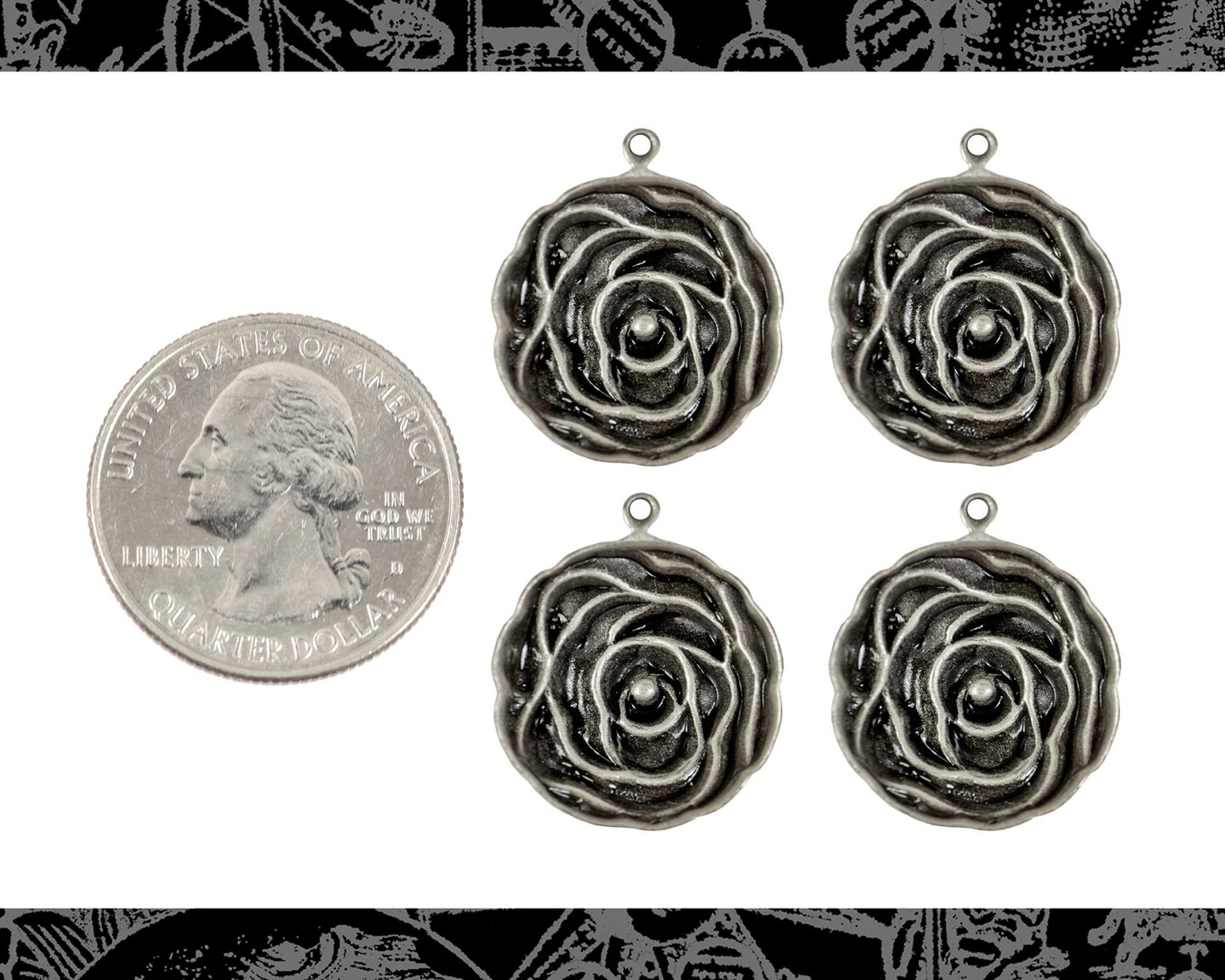 Antiqued Silver Plated Brass Fat Rose Charms - Set of Four - S-C225