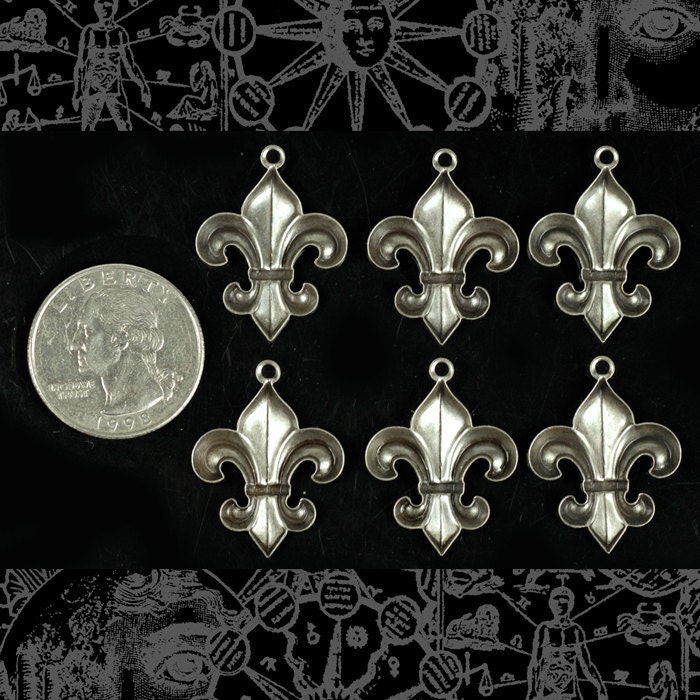 Antiqued Silver Plated Brass Fleur De Lis Charms - Set of Six - S-C62