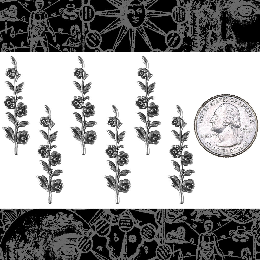 Antiqued Silver Plated Brass Floral Spray Embellishment Charms - Set of Four - S-C20