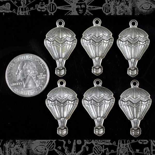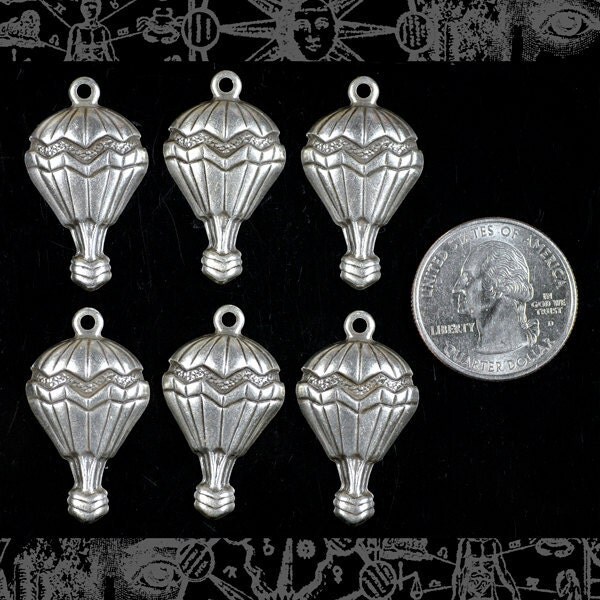Antiqued Silver Plated Brass Hot Air Balloon Charms - Set of Six - S-C38