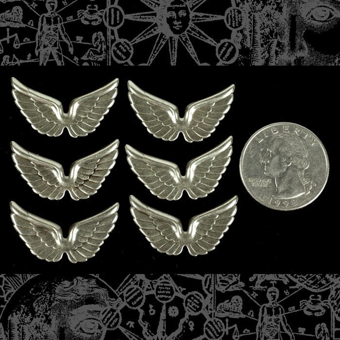 Antiqued Silver Plated Brass Joined Wing Charms - Set of Six - S-C44