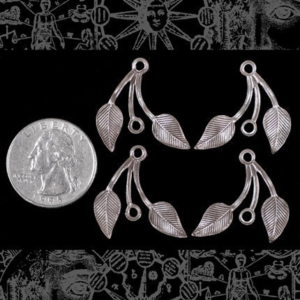 Antiqued Silver Plated Brass Leaf Mirror Image Brass Connectors - Two sets of Two - S-2C01