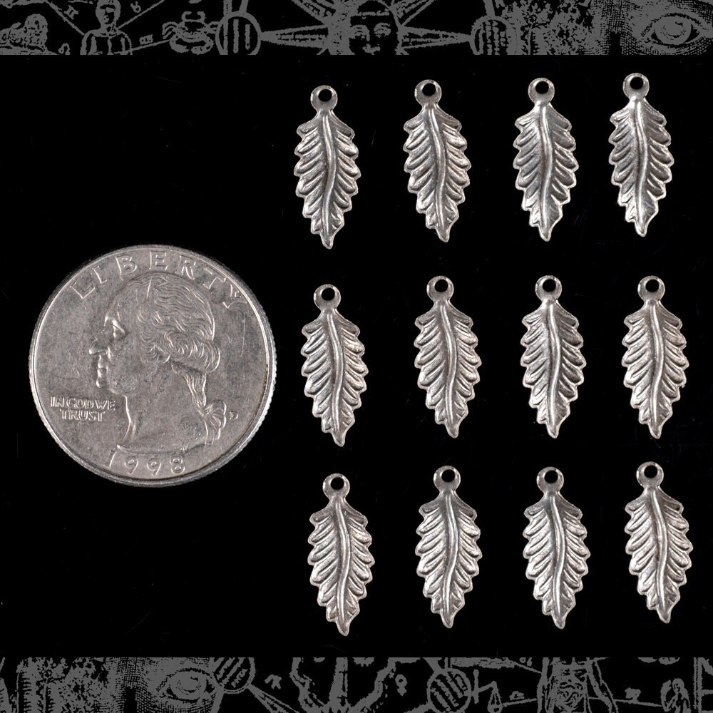 Antiqued Silver Plated Brass Little Pointed Feather Leaves Charms - Set of Twelve - S-C25