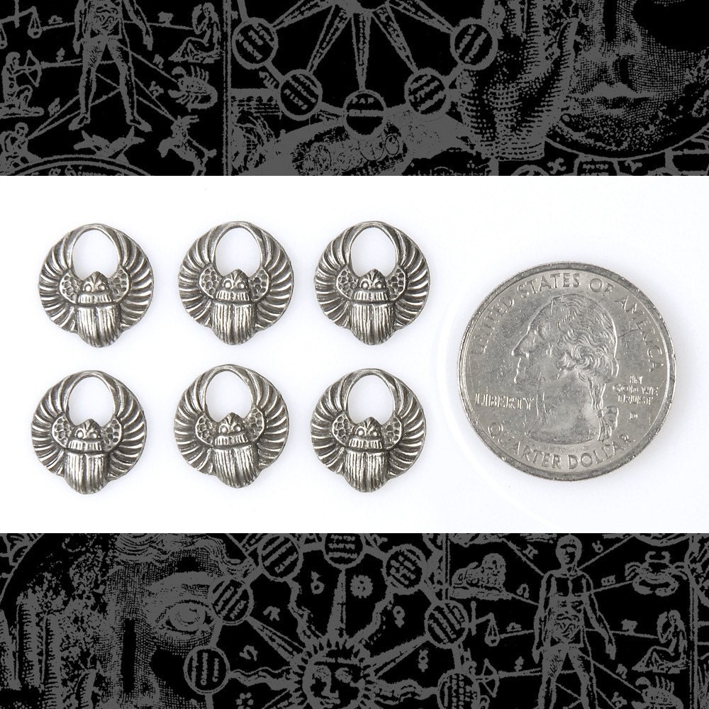 Antiqued Silver Plated Brass Mini Scarab Charms - Set of Six - S-C32