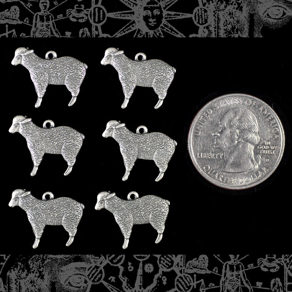 Antiqued Silver Plated Brass Sheep Charms- Set of Six - S-C150