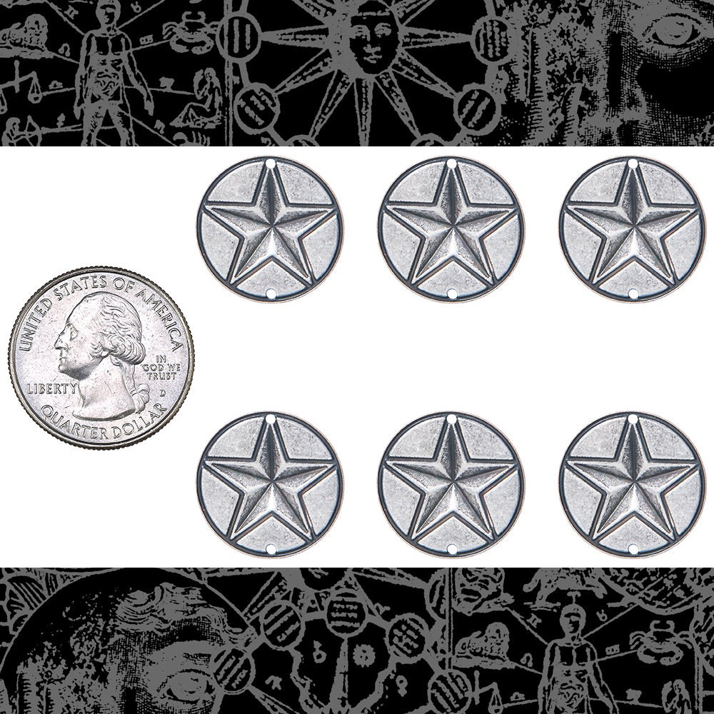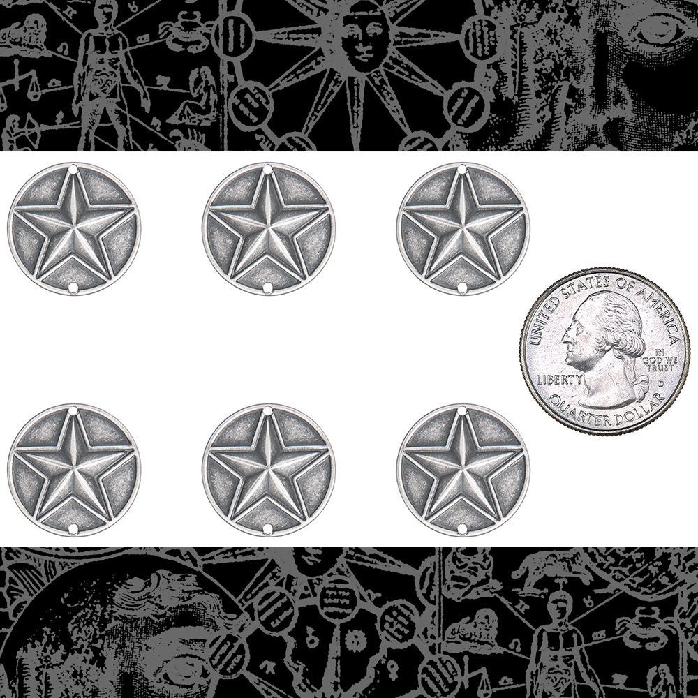Antiqued Silver Plated Brass Star in Circle Two Hole Connectors - Set of Six - XXX - S-2C87