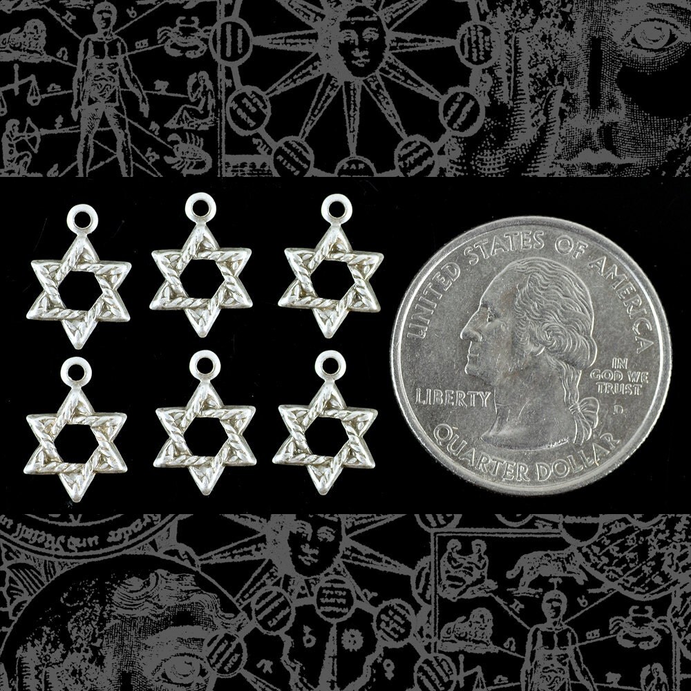 Antiqued Silver Plated Brass Star of David Charms - Set of Six - S-C119