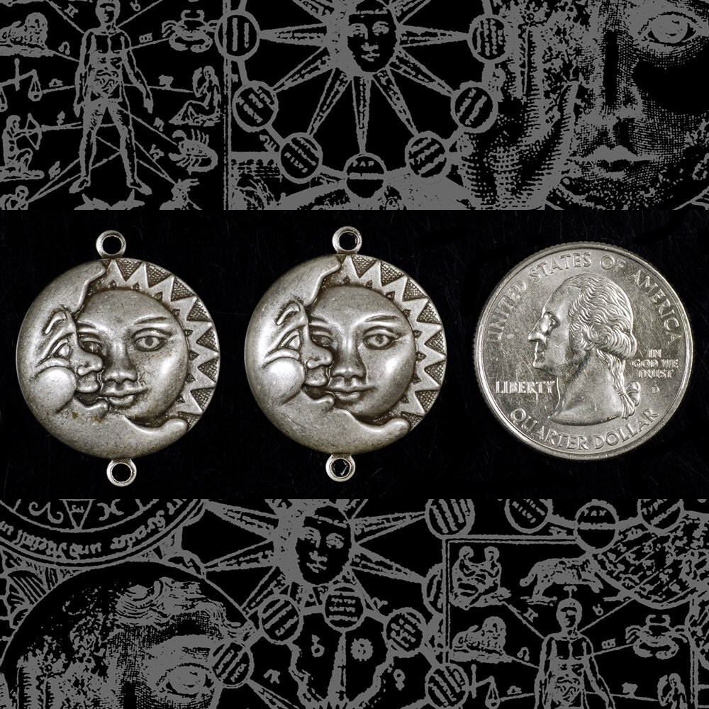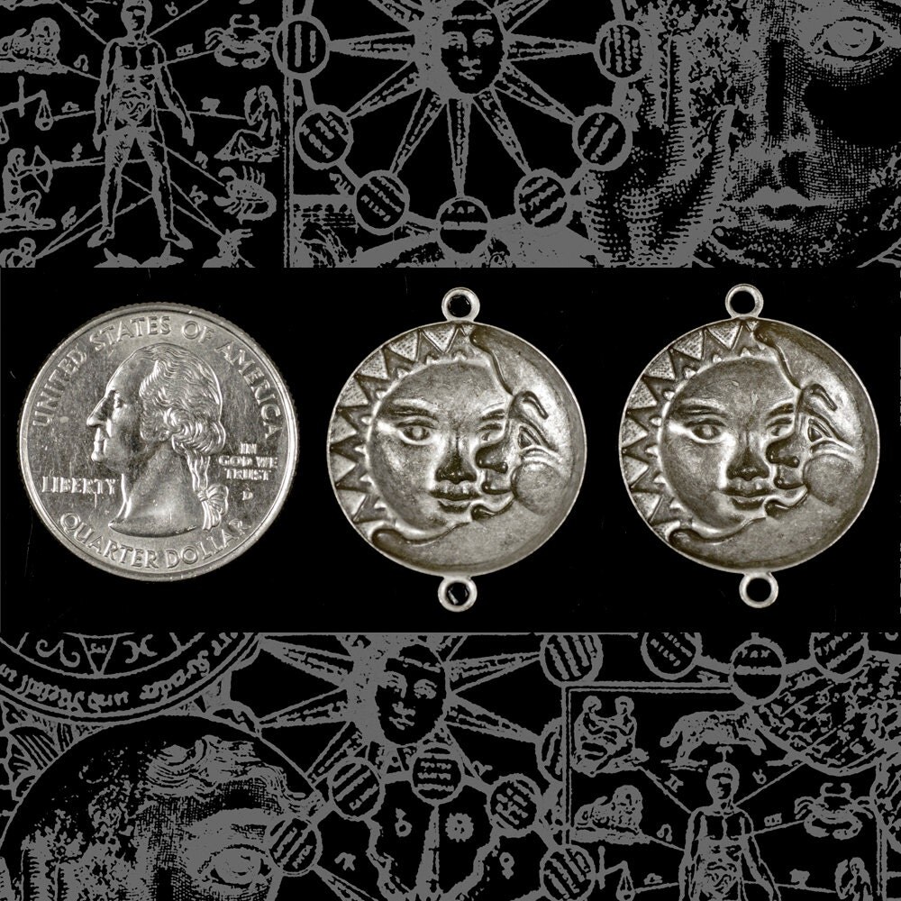 Antiqued Silver Plated Brass Sun and Moon Pendants - Set of Two - XXX - S-P86