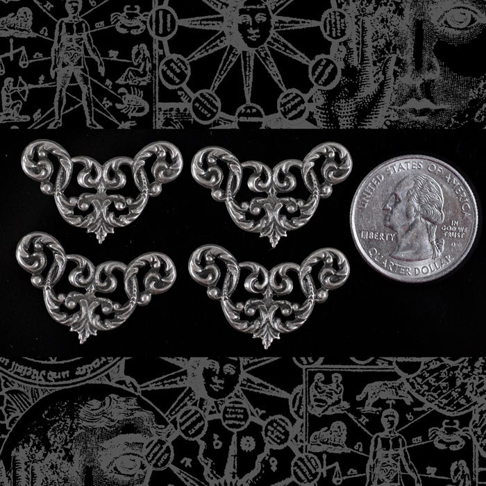 Antiqued Silver Plated Brass Vintage Corners or Connectors - Set of Four - S-2C41