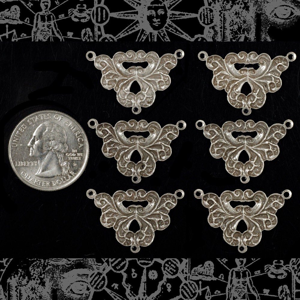 Antiqued Silver Plated Brass Vintage Filigree Three Way Connectors - Set of Six S-3C17