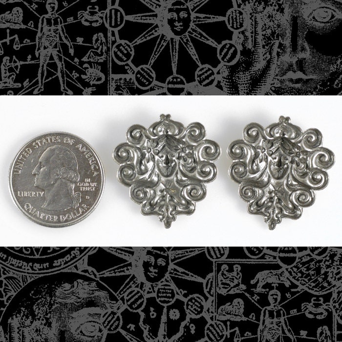 Antiqued Silver Plated Brass Vintage Goddess with Flying Hair Pendants - Set of Two - S-P49