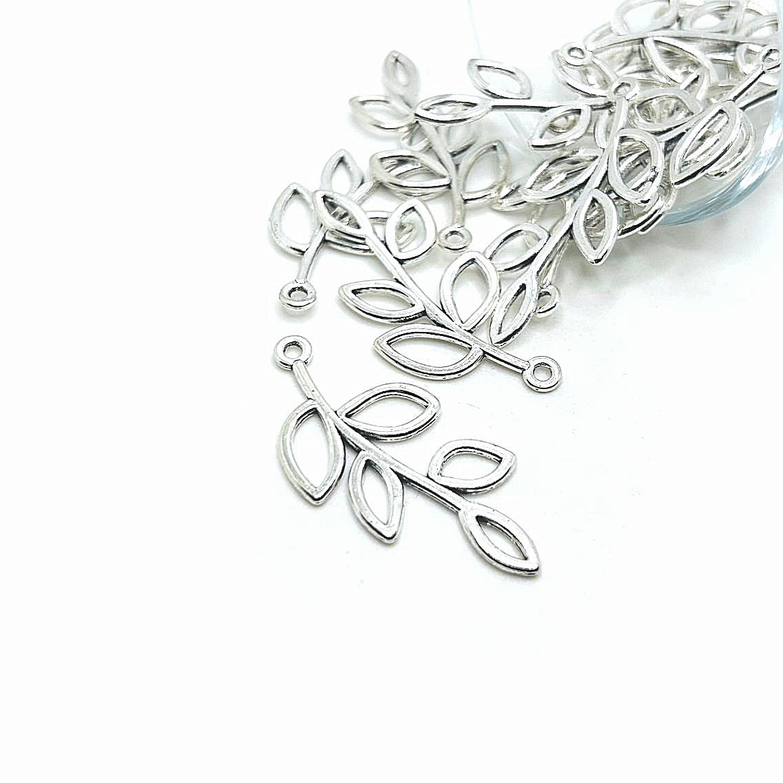 Antiqued Silver Tree Branch Charm, Leaf Connector, 42x19mm
