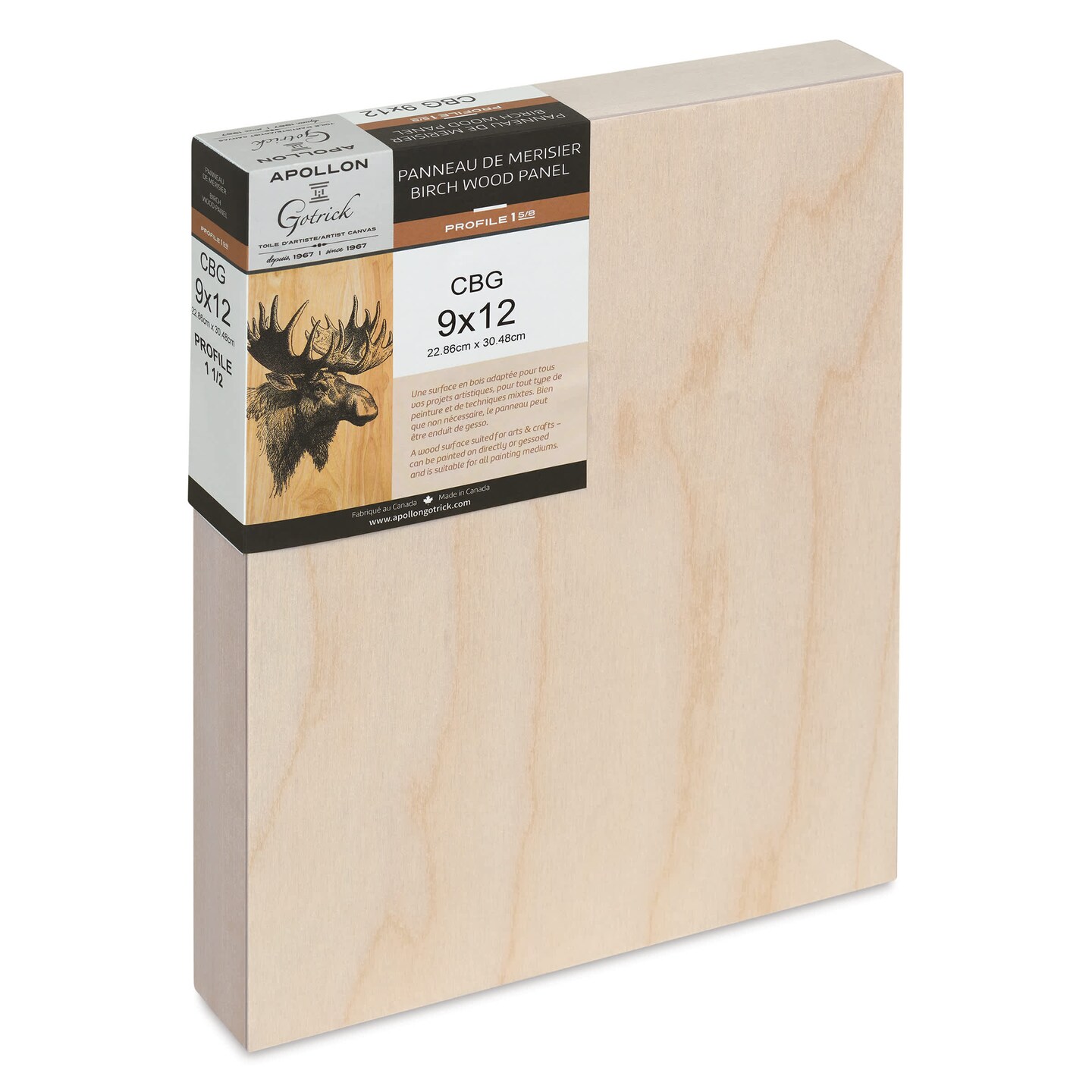 Apollon Gotrick Cradled Wood Panel - 9" x 12", 1-5/8" Profile