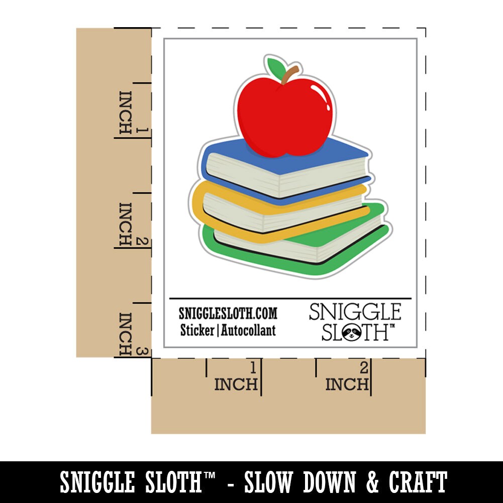 Apple on Stack of Books Reading Library Teacher Waterproof Vinyl Phone Tablet Laptop Water Bottle Sticker Set - 5 Pack