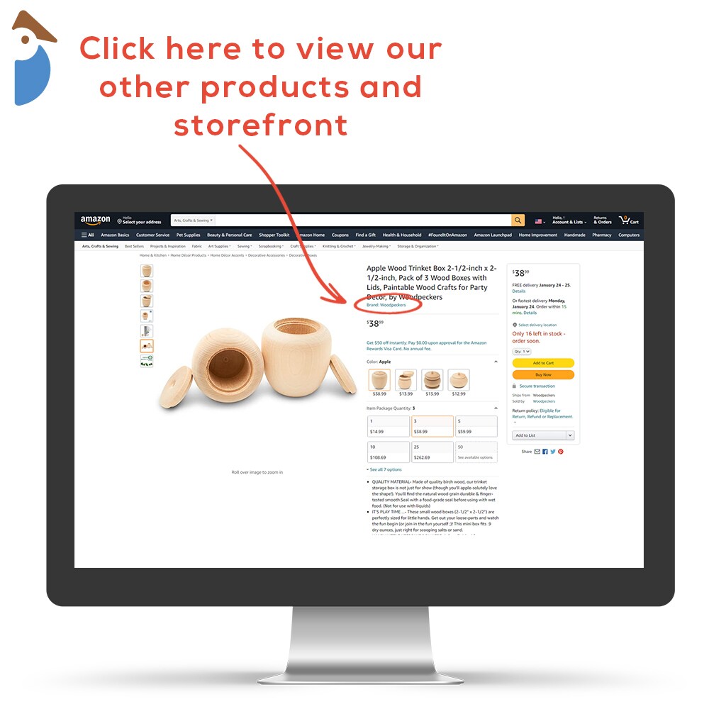 Apple Wood Trinket Box 2-1/2", Unfinished for Home Decor & Craft | Woodpeckers
