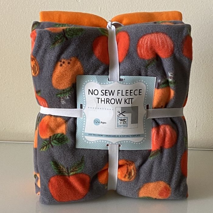 Apples on Gray Anti-Pill No Sew Throw Fleece Fabric Kit