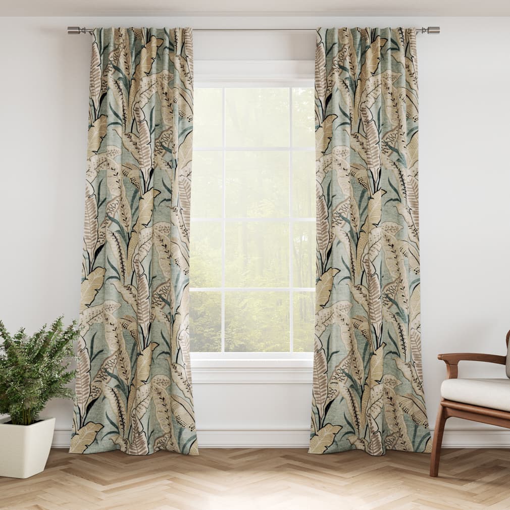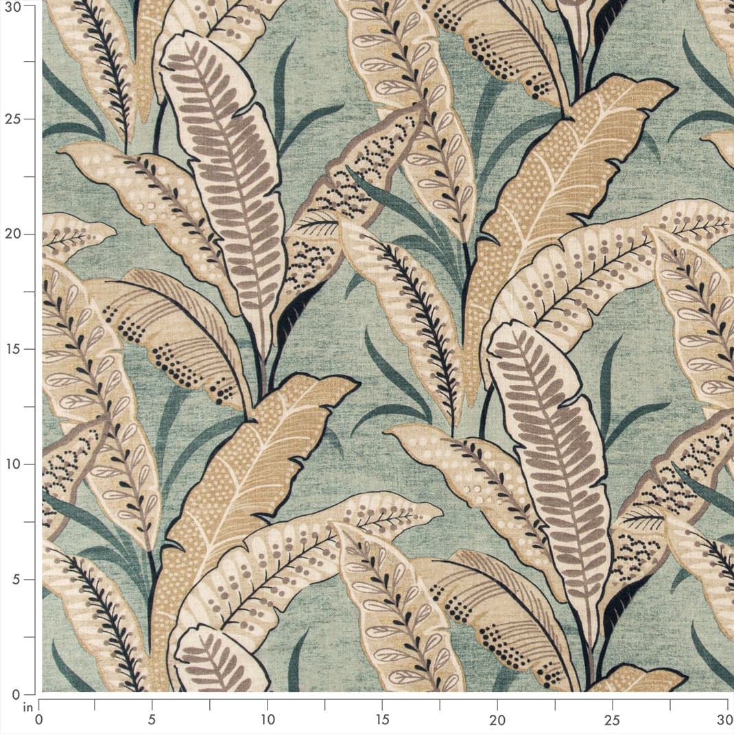 Aqua - Aqua & Teal Leaves,Tropical & Botanical Upholstery Fabric 54 Inches"