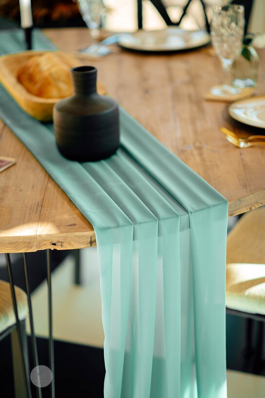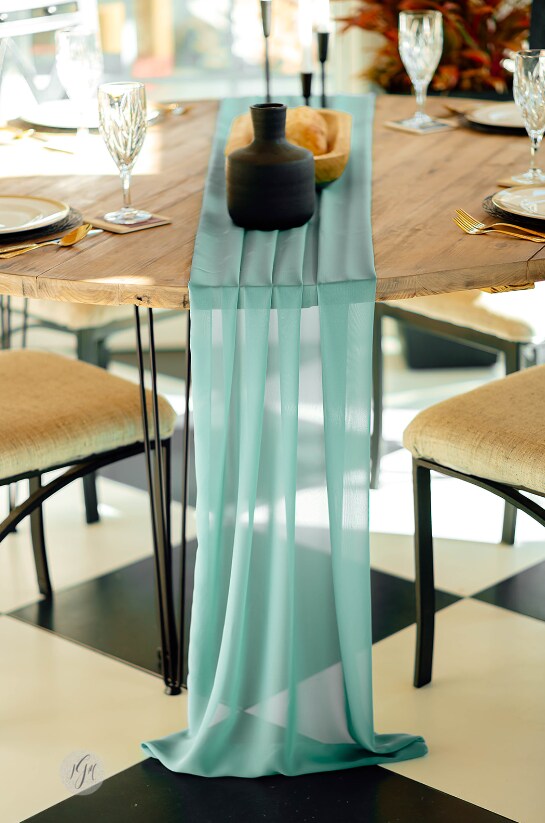 Aqua Blue Chiffon Table Runner