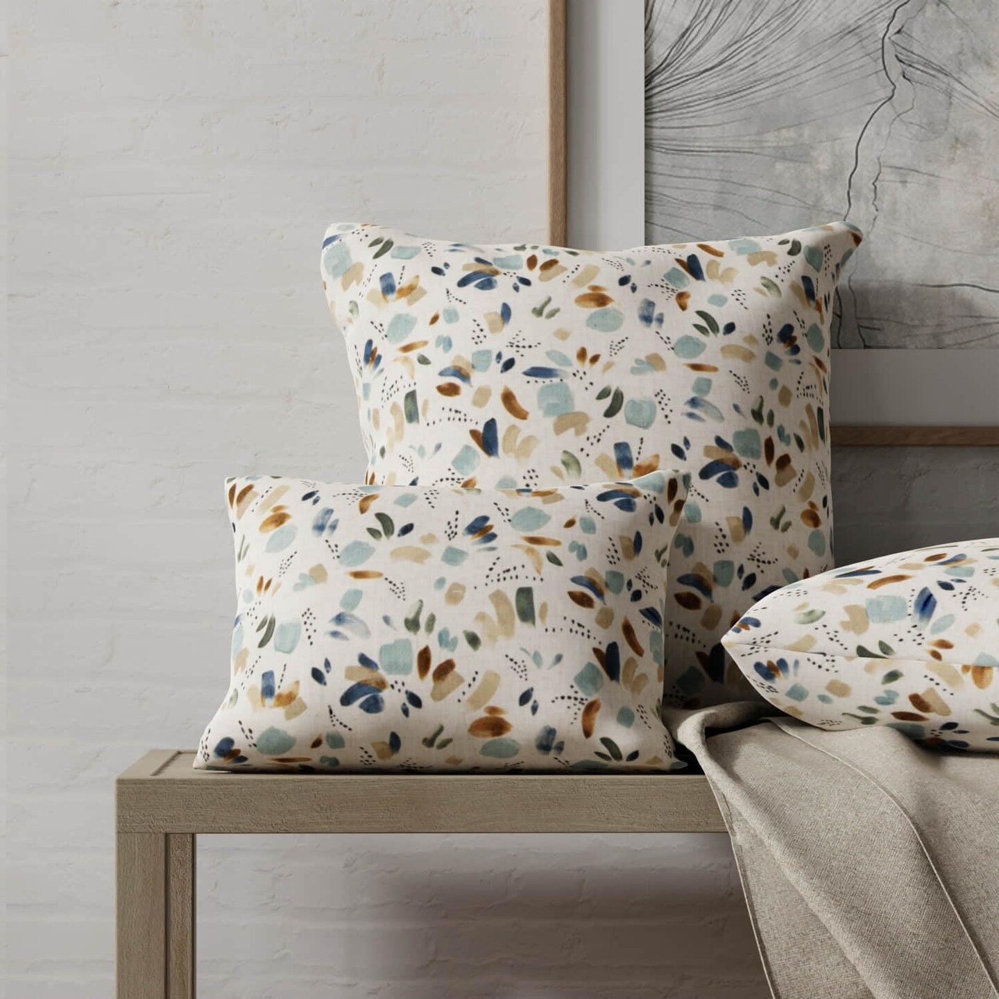 Aqua Blue Stain Resistant Performance Abstract Print Upholstery Fabric by The Yard - SKU: Ezra Mineral