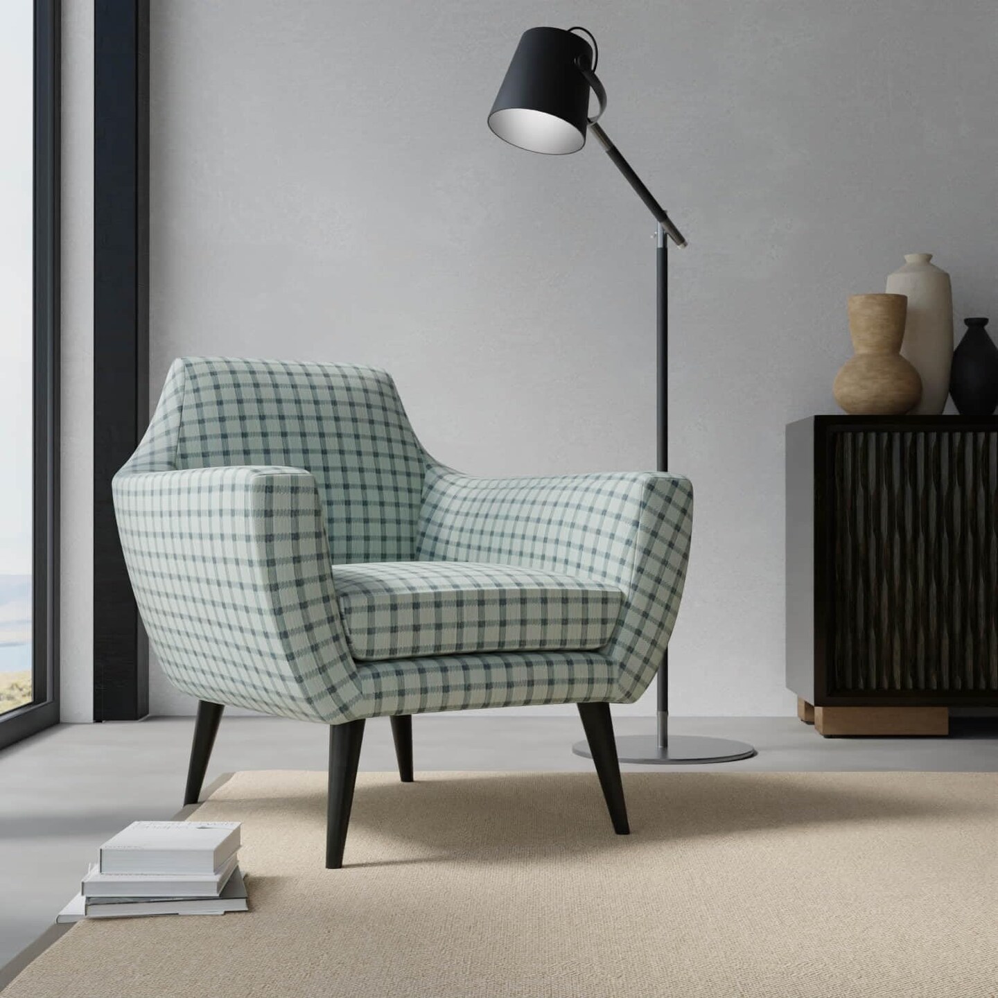 Aqua Blue Stain Resistant Performance Pet Friendly Plaid Woven Pattern Upholstery Fabric by The Yard - SKU: Callahan Surf