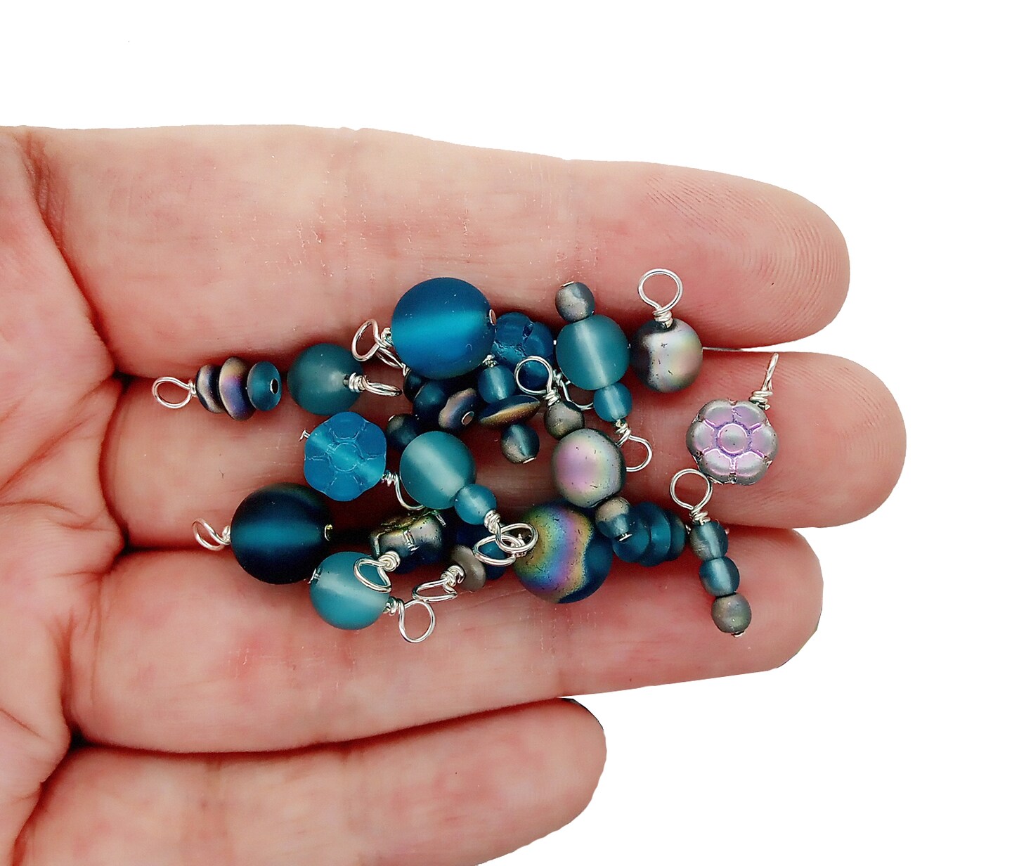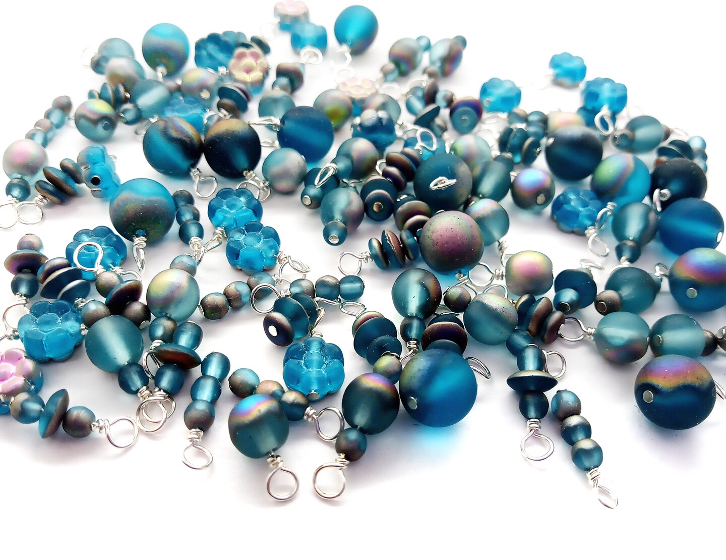 Aqua Glass Bead Dangles, 20 pieces, Mixed Turquoise AB Matte Charms for Bracelets, Adorabilities