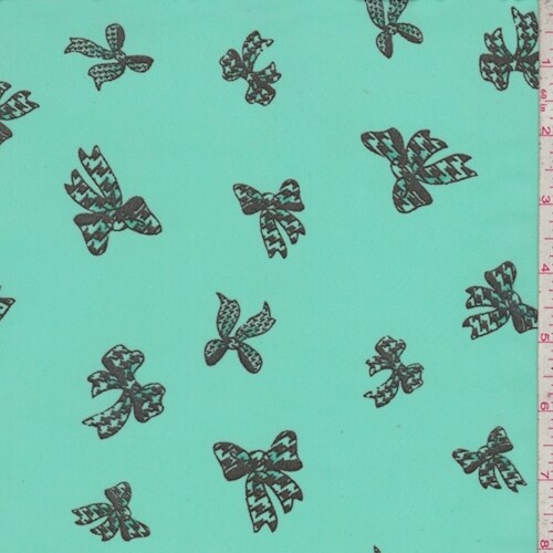 Aqua Green/Black Bow Georgette Fabric By the Yard