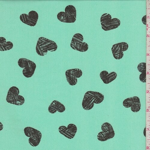 Aqua Green/Onyx Heart Georgette Fabric By the Yard
