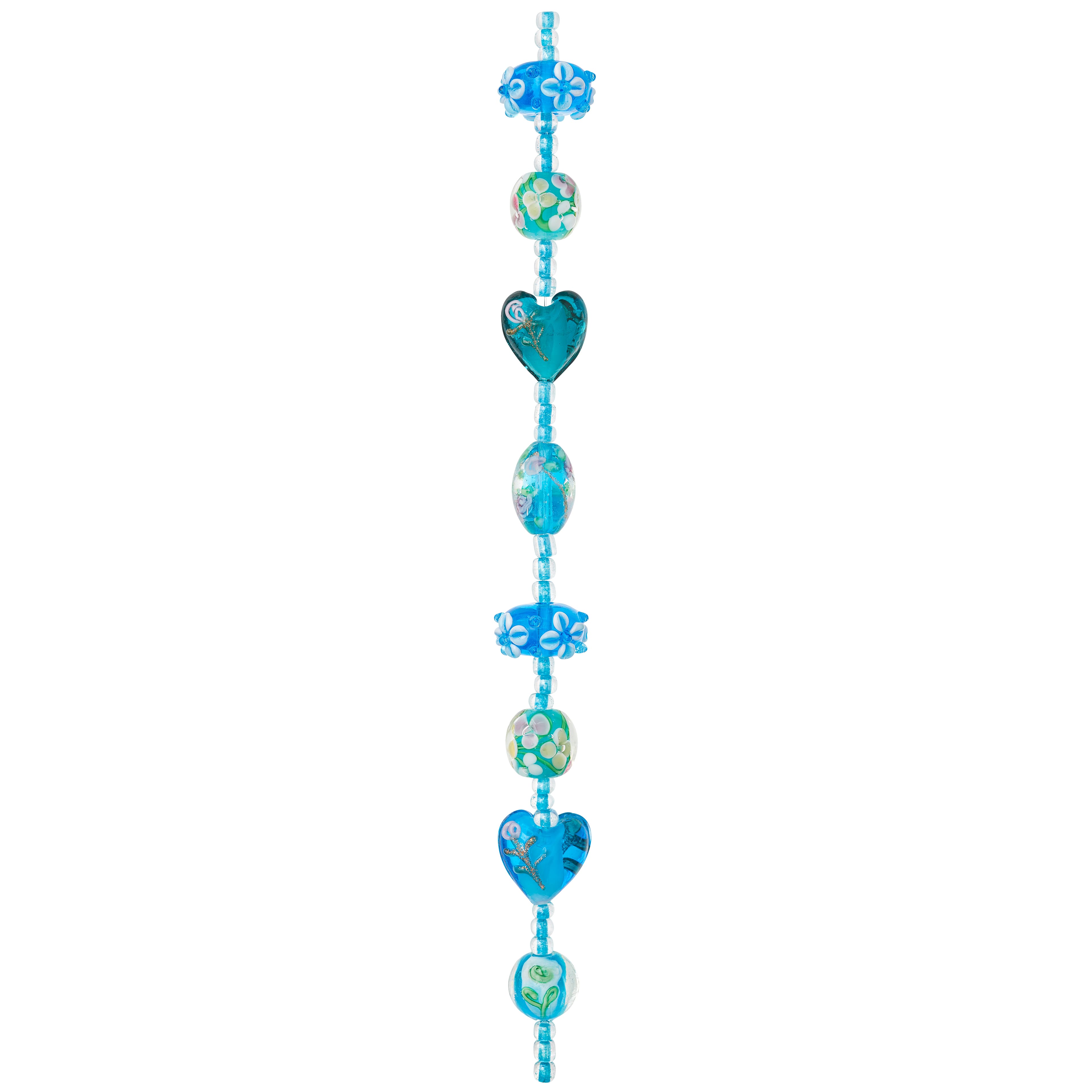 Aqua Heart & Flower Lampwork Glass Beads by Bead Landing™