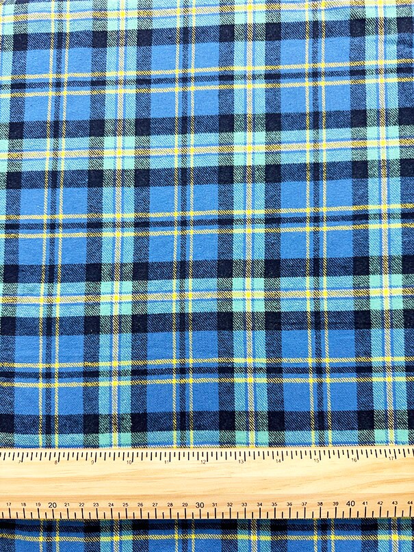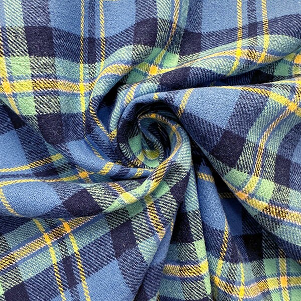 Aqua Multi Yarn Dyed Plaid Flannel Fabric By the Yard