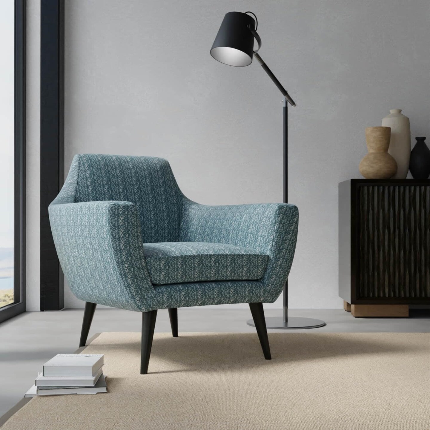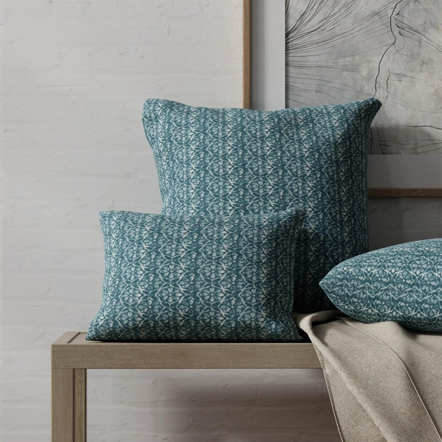 Aqua Performance Pet Friendly Small Scale Linen Look Print Upholstery Fabric by The Yard - SKU: Talon Teal