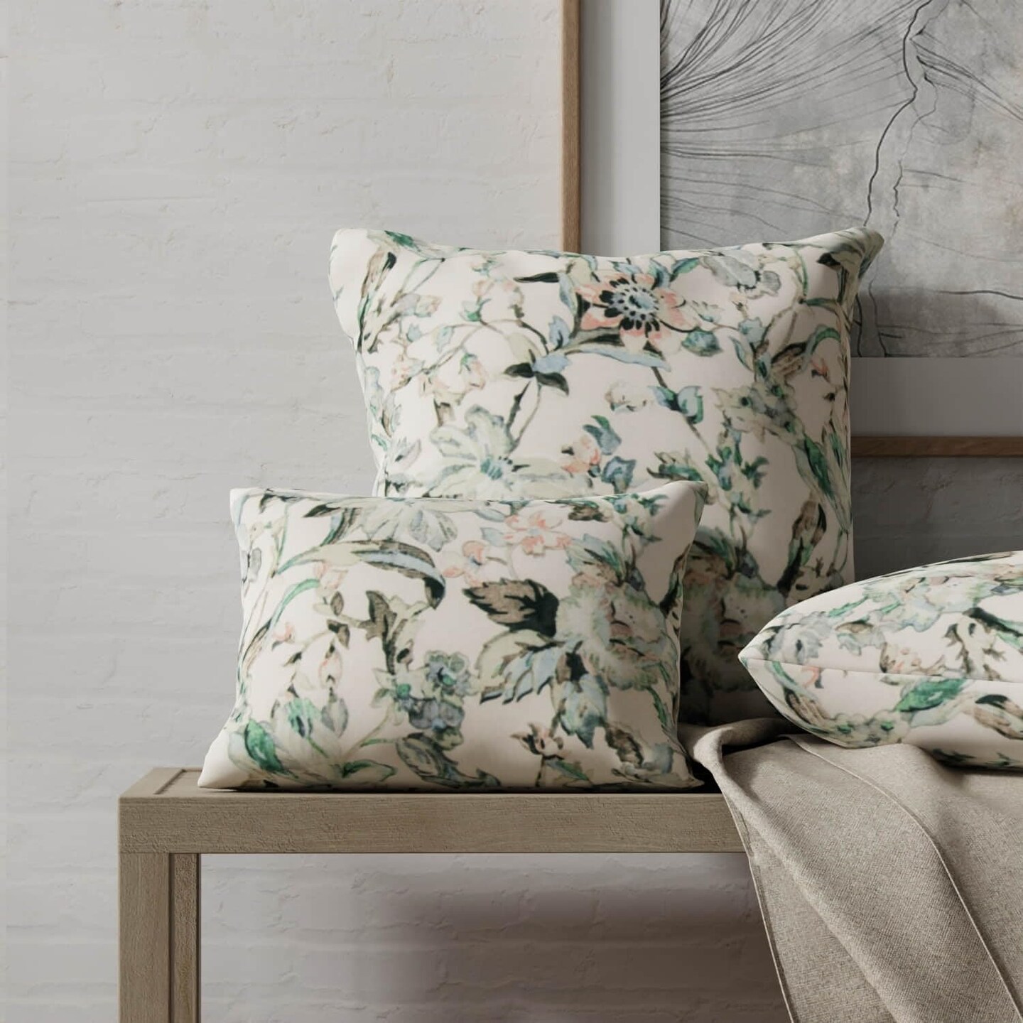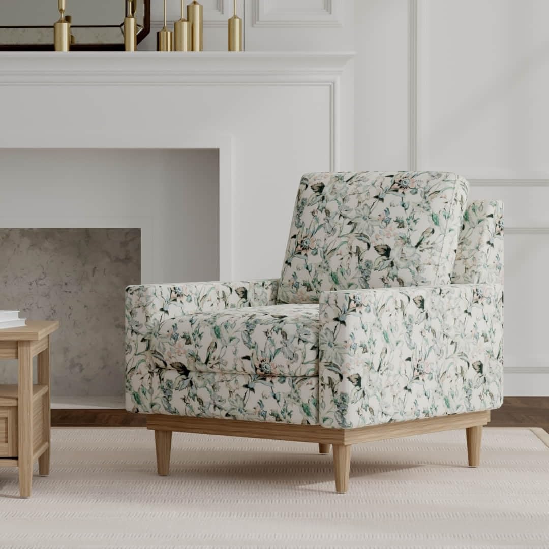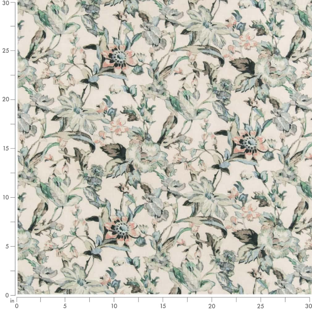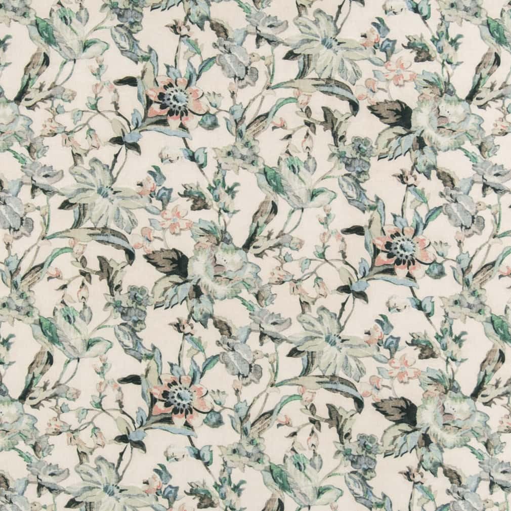 Aqua Stain Resistant Performance Pet Friendly Abstract Floral Linen Look Print Upholstery Fabric by The Yard - SKU: Titus Seacrest