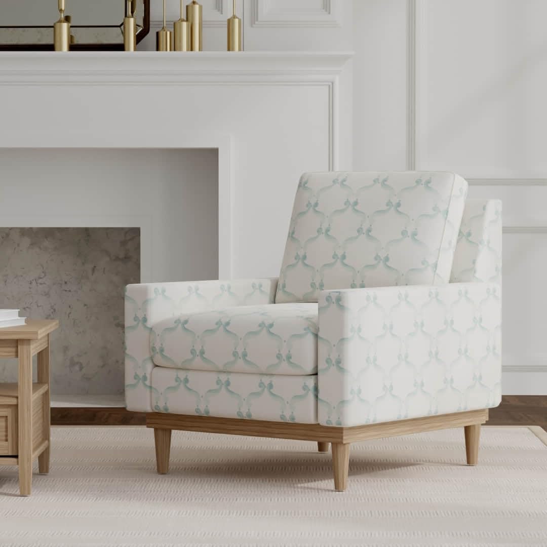 Aqua Stain Resistant Performance Pet Friendly Abstract Geometric Linen Look Print Upholstery Fabric by The Yard - SKU: Randy Rain