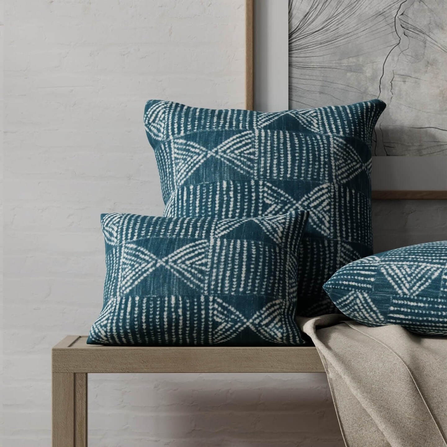 Aqua Stain Resistant Performance Pet Friendly Abstract Global Linen Look Print Upholstery Fabric by The Yard - SKU: Rover Lagoon