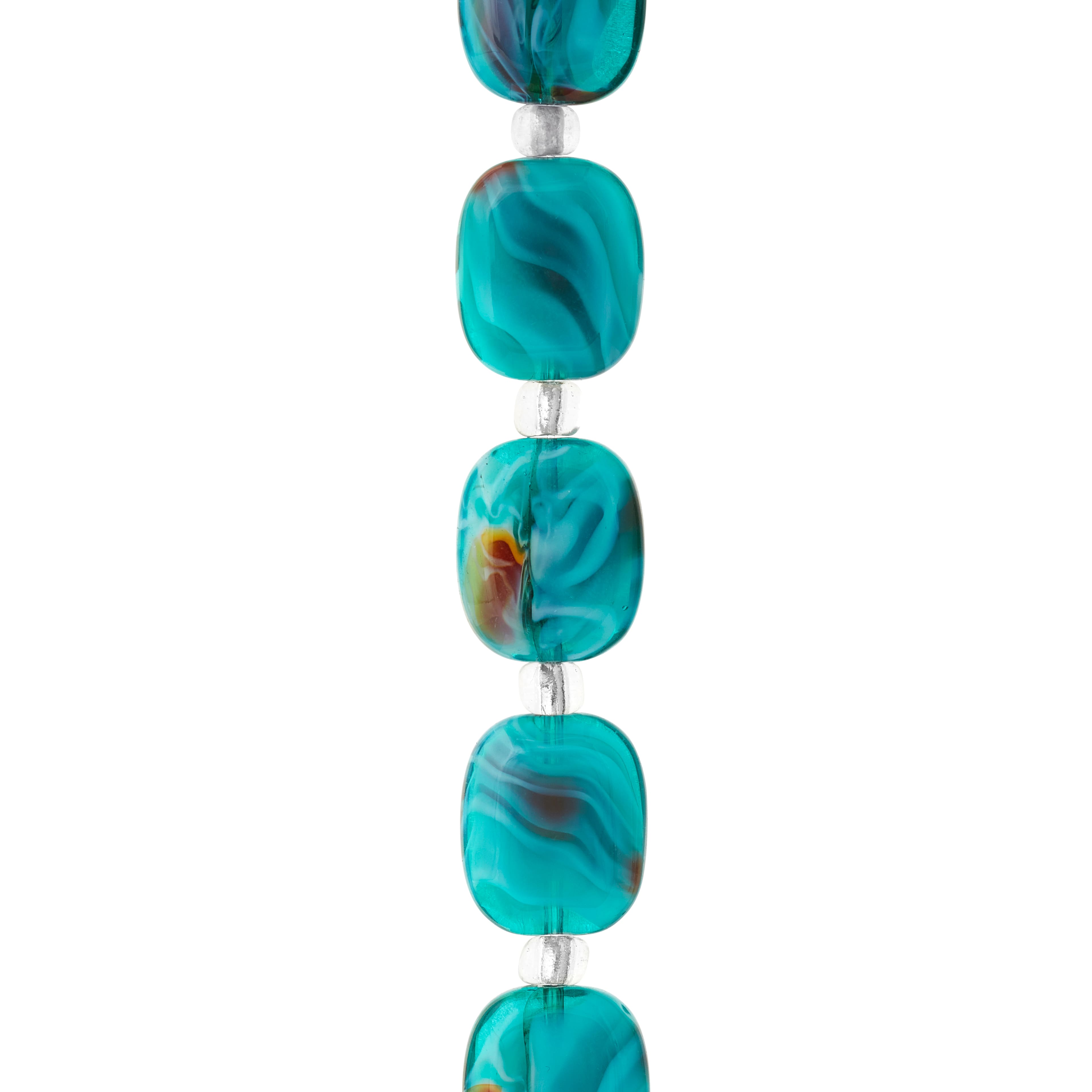 Aqua Swirl Glass Rectangle Beads, 14mm by Bead Landing™