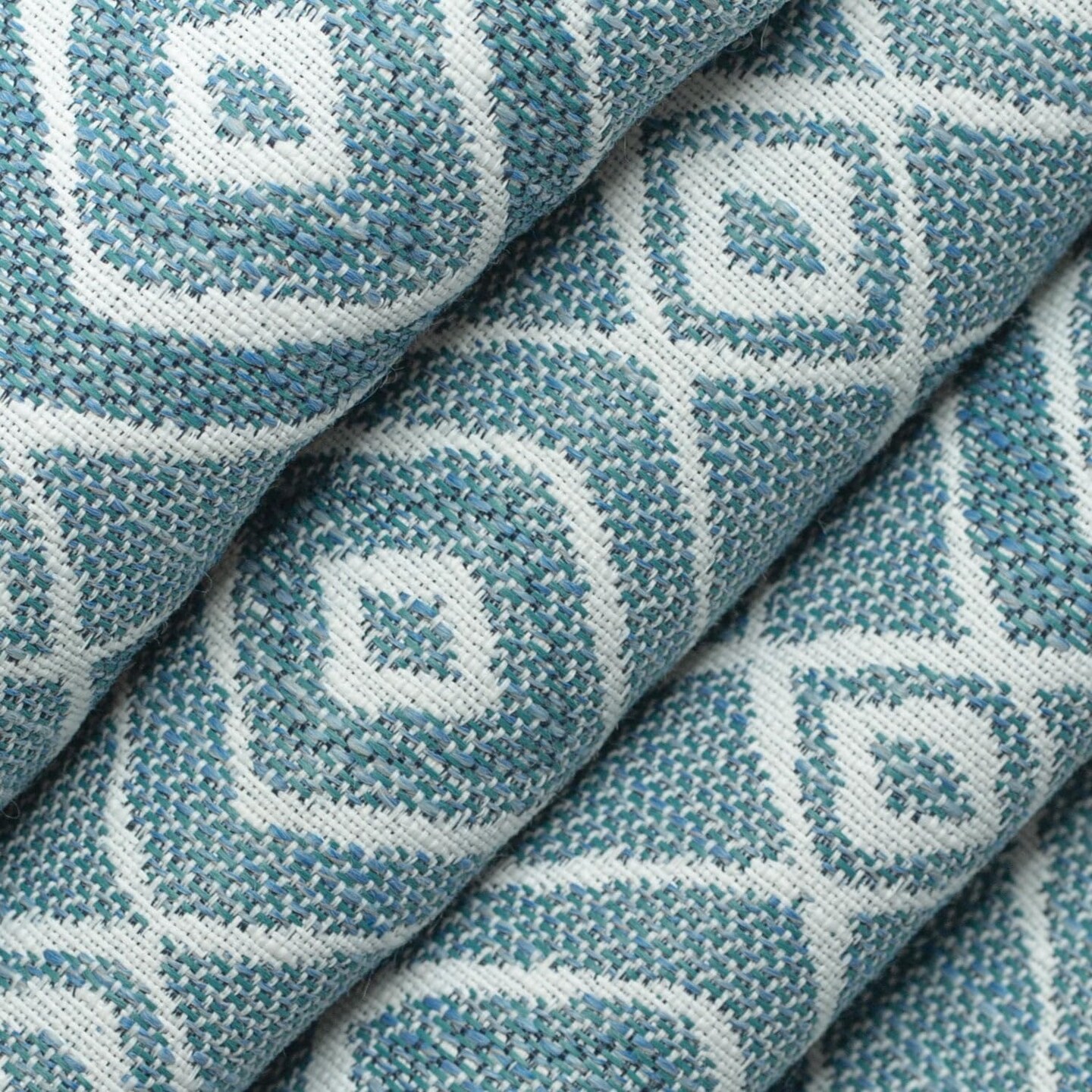 Aqua Teal Performance Grade Abstract Geometric Woven Pattern Upholstery Fabric by The Yard - SKU: Hogan Azure