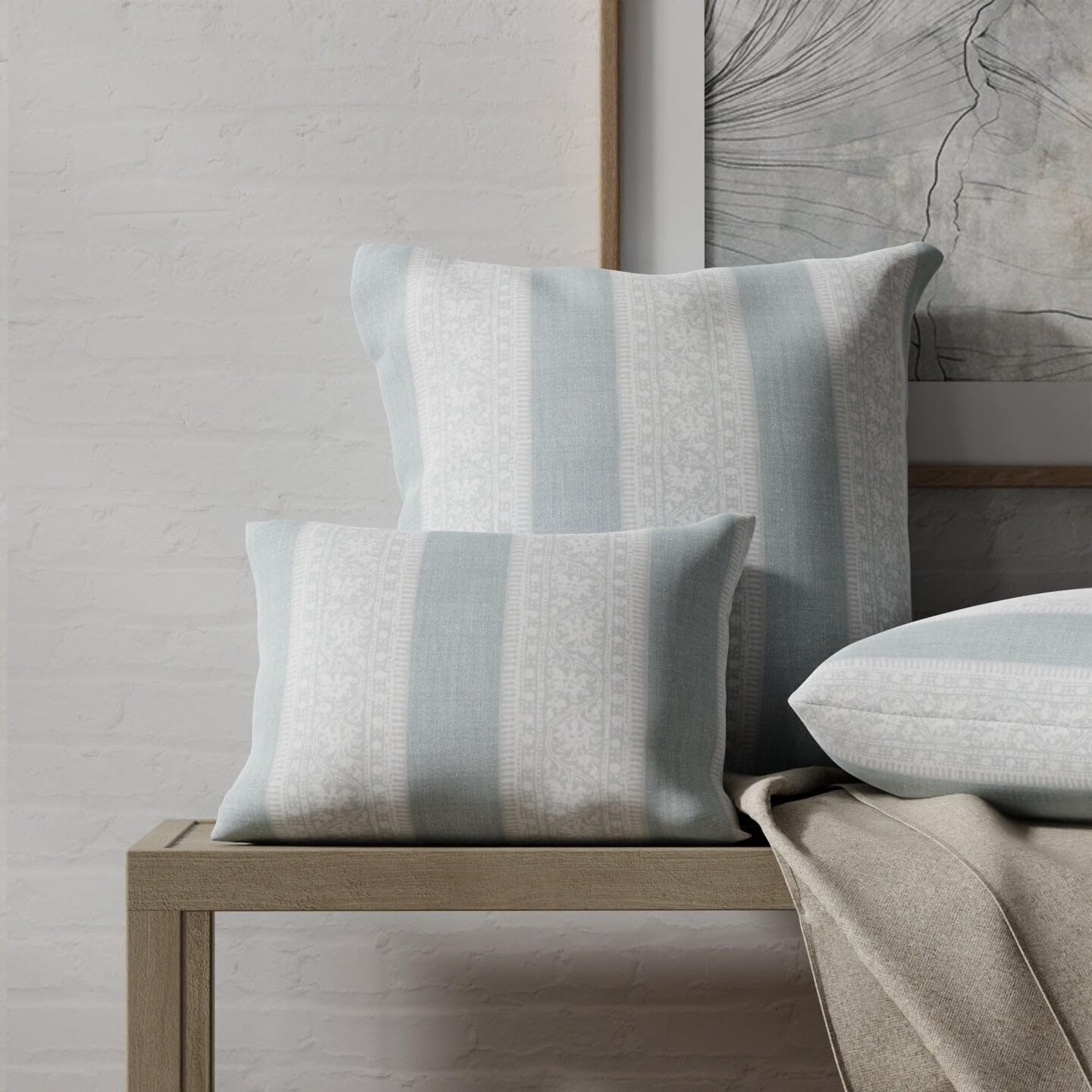 Aqua Teal Performance Grade Cotton Blend Eco Friendly Linen Look Print Pattern Upholstery Fabric by The Yard - SKU: Henderson Water