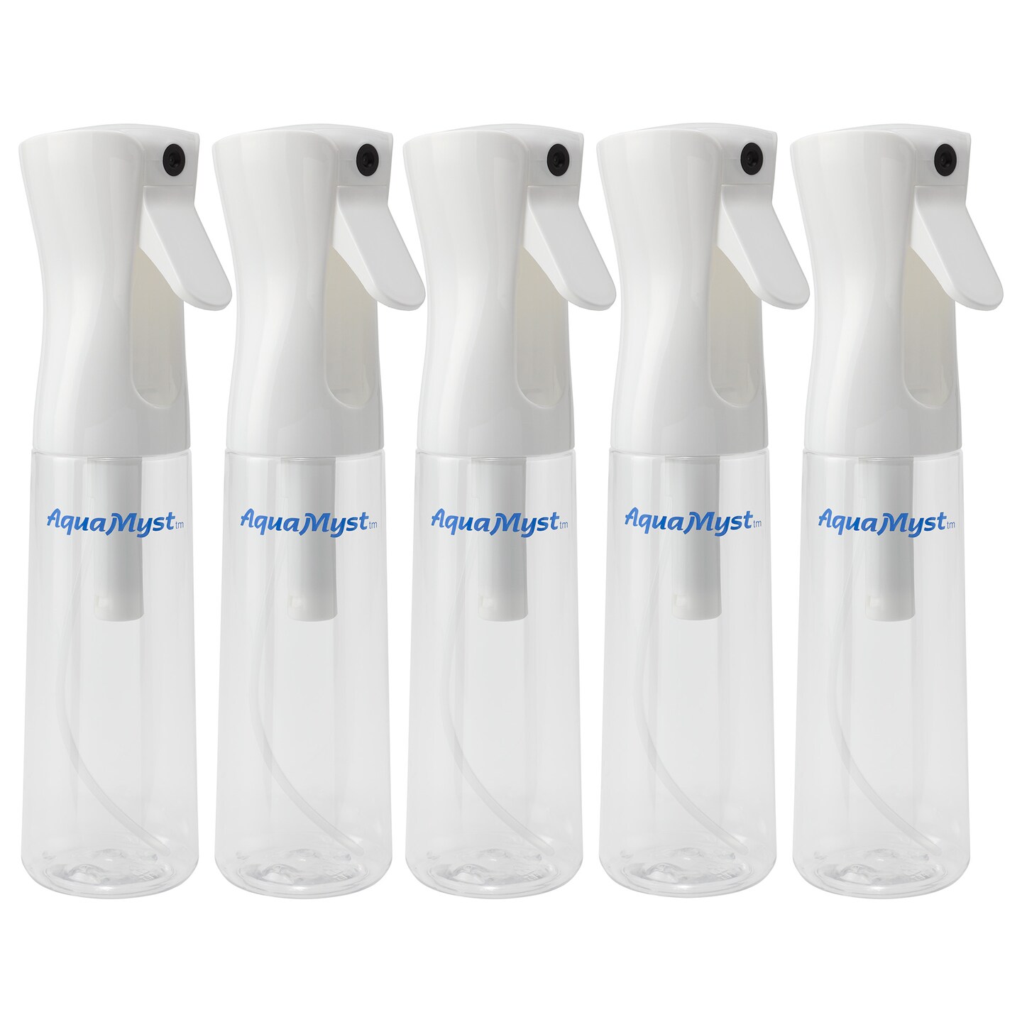 AquaMyst Fine Mist Continuous Spray Bottle 300ml (10.14 oz) - Ergonomic, Durable, Clear Plastic Plant Mister, Misting Water Bottle for Hair Stylists, Plant Enthusiasts, Artists & Curly Hair
