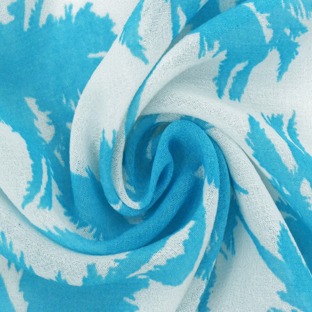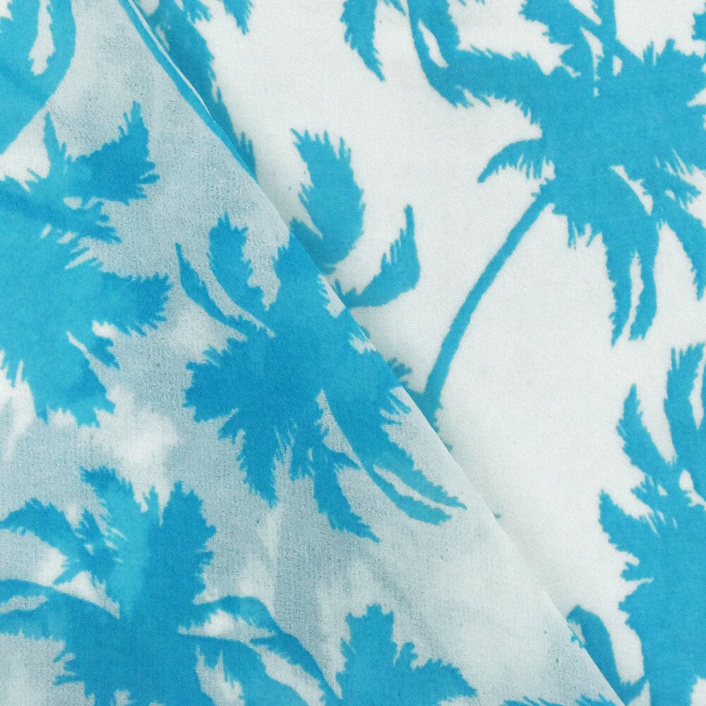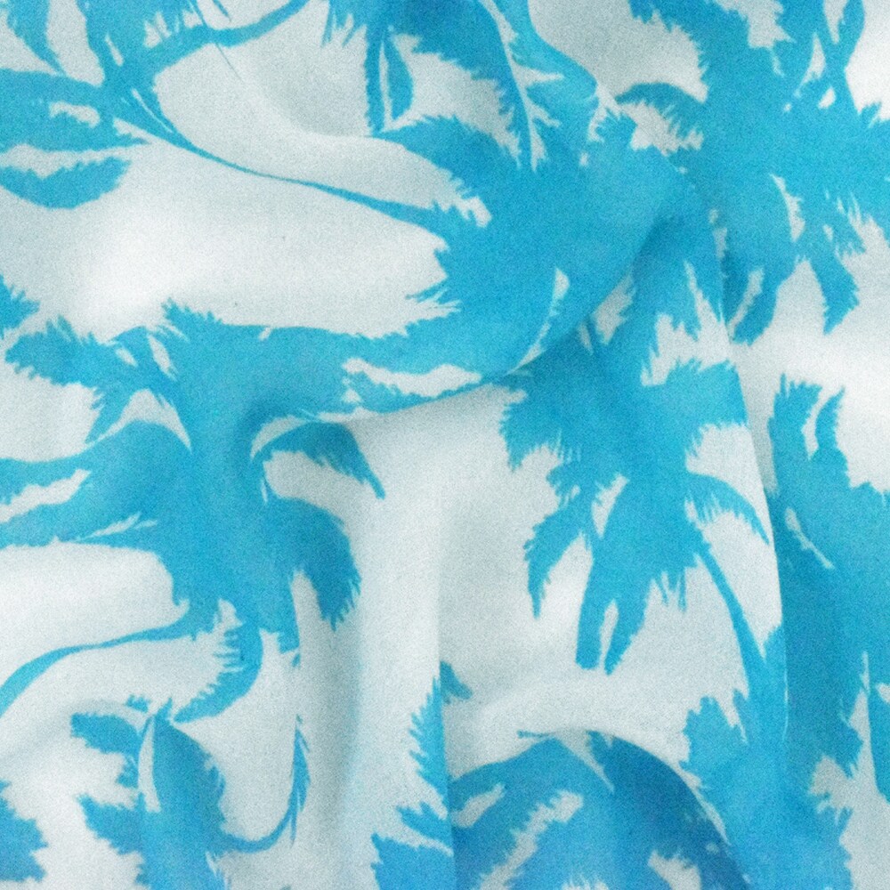 Aquatic Teal-Ivory Palm Tree Printed Crepe Chiffon Fabric By the Yard