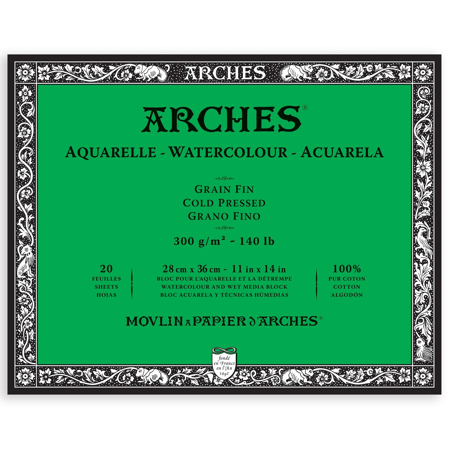 Arches Aquarelle Cold Pressed Watercolor Block 11"X14"- 140lb, 20 Sheets