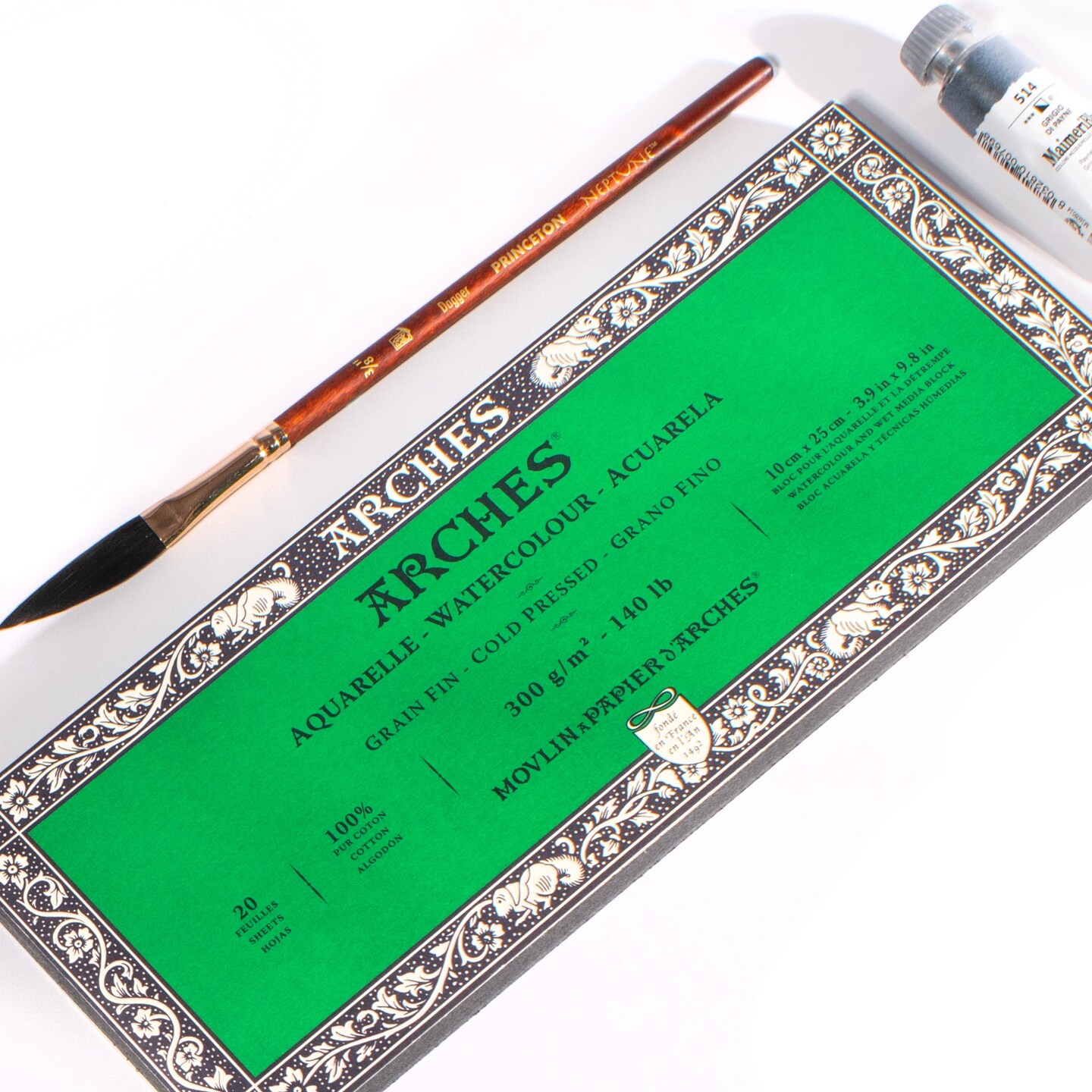 Arches Aquarelle Cold Pressed Watercolor Block 3.9"X9.8"- 140lb, 20 Sheets