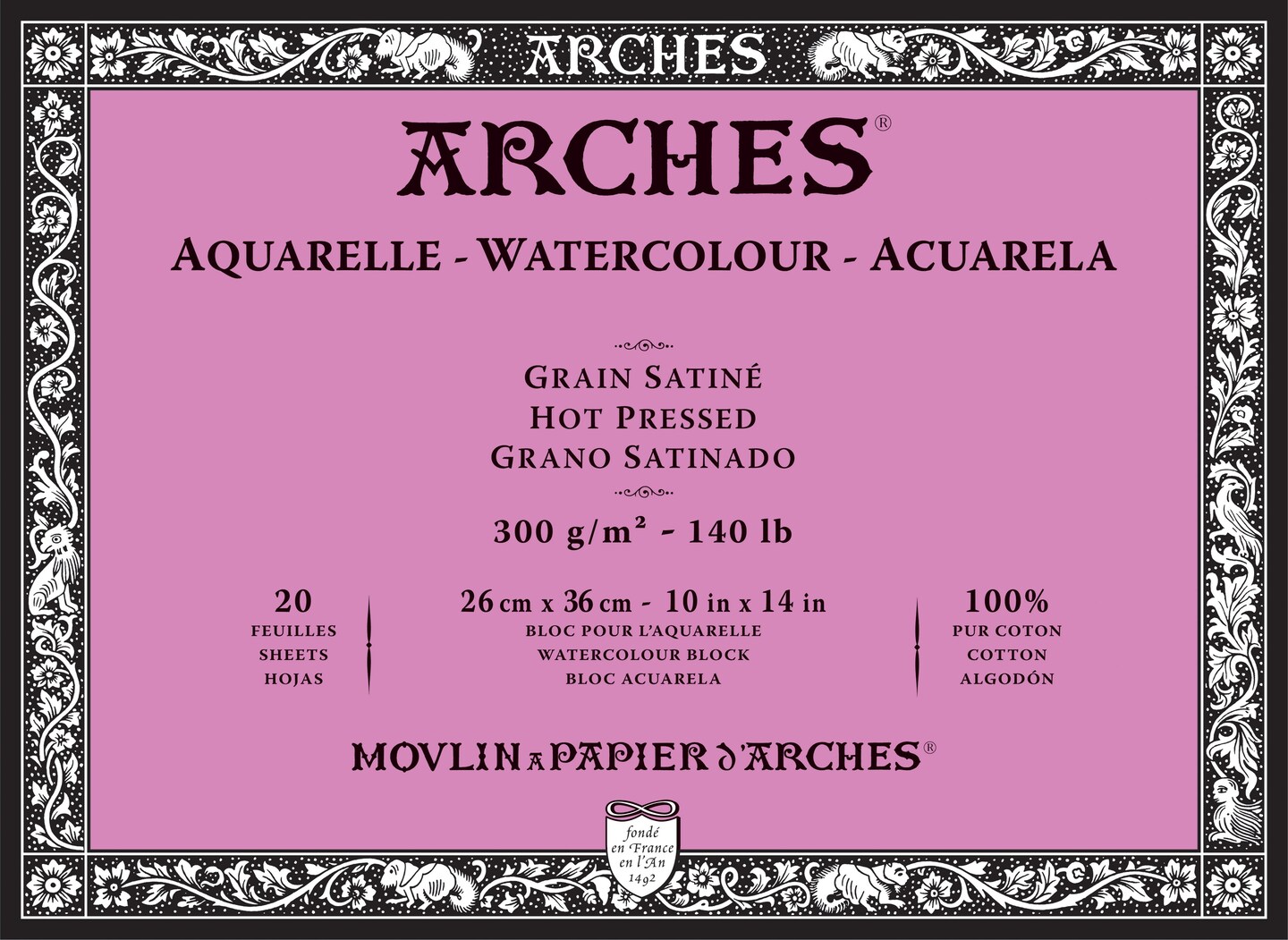 Arches Aquarelle Hot Pressed Watercolor Block 10"X14"- 140lb, 20 Sheets