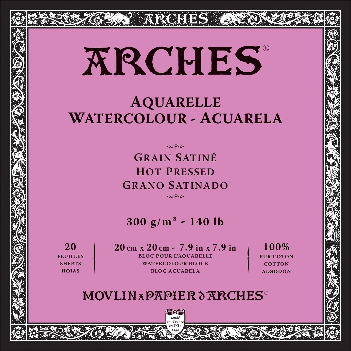 Arches Aquarelle Hot Pressed Watercolor Block 7.9"X7.9"- 140lb, 20 Sheets