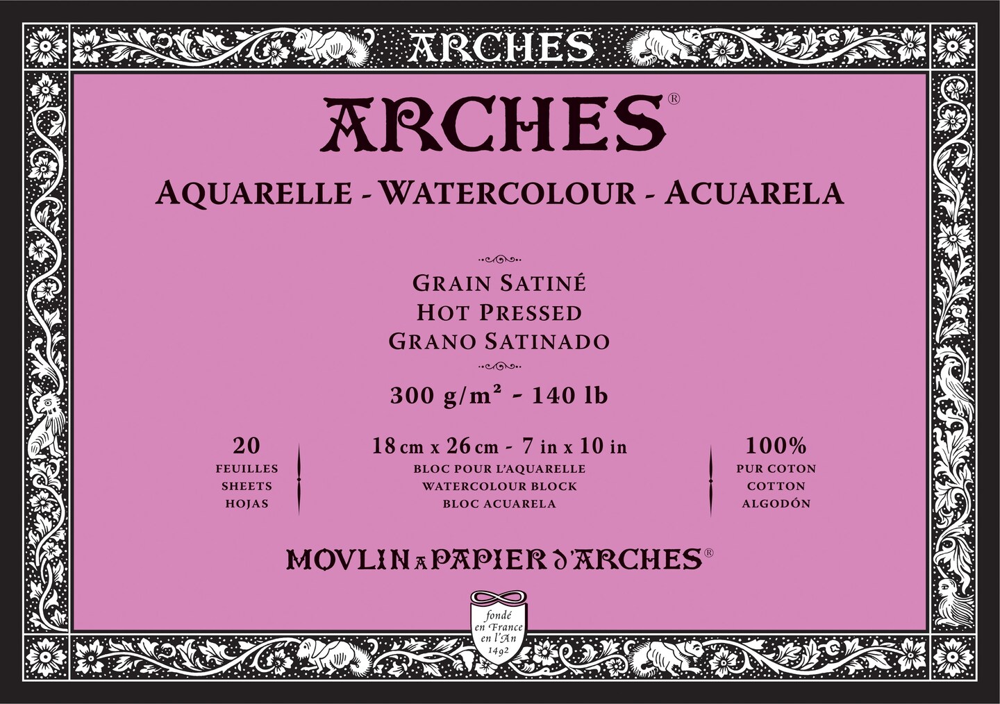 Arches Aquarelle Hot Pressed Watercolor Block 7"X10"- 140lb, 20 Sheets