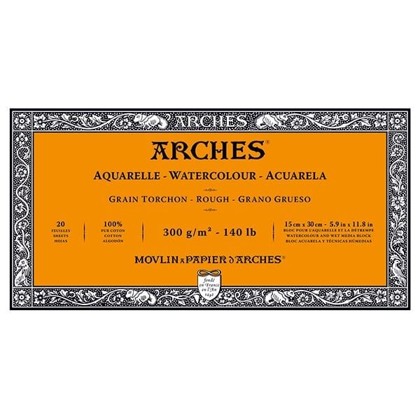 Arches Watercolor Block 5.9""x11.8"", 140lb Rough, 20 Sheets