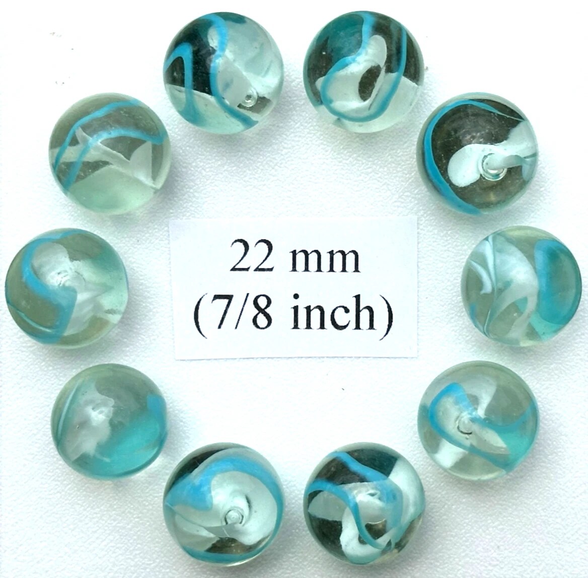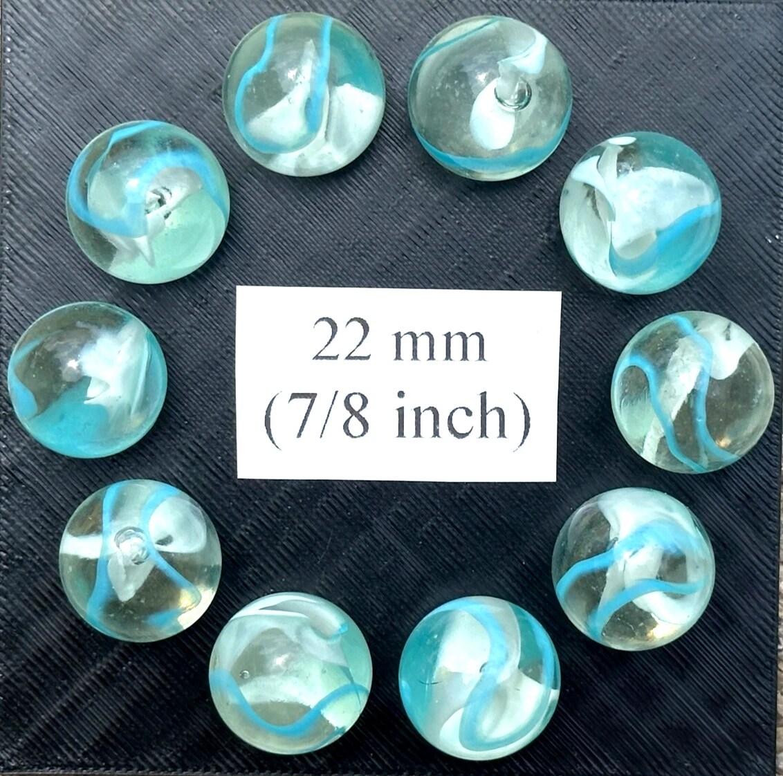 ARCTIC Clear Blue Swirl Glass Marbles 22mm (7/8 inch) SHOOTER Taw (Lot of 10)