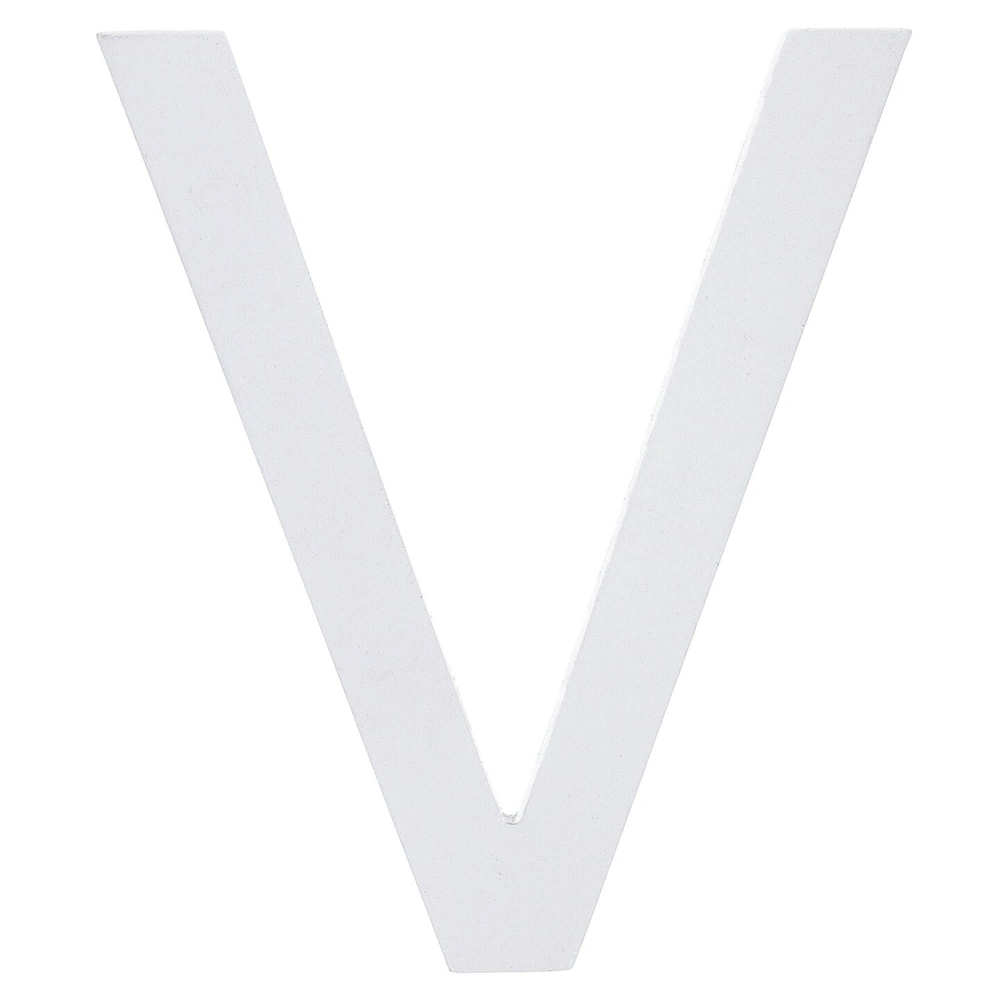 Arial Font White Painted MDF Wood Letter V (6 Inches)